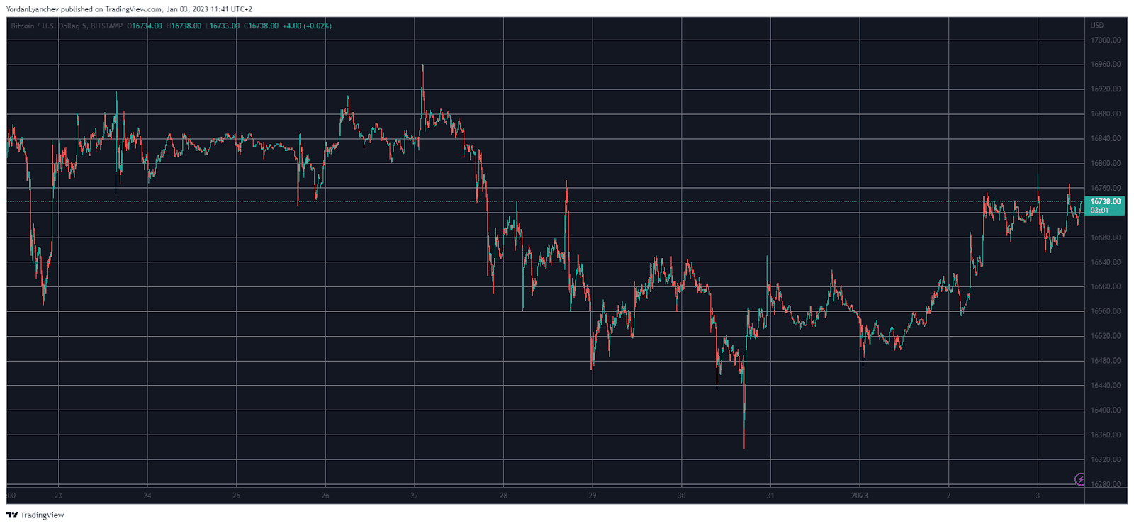 Although the first day of the new year brought a similar lack of volatility, the landscape started to change yesterday. Amid some quite promising predictions for 2023, BTC added almost 2% of value and tapped a 5-day high of just over $16,750.